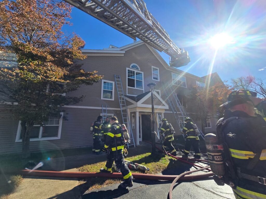 Randolph firefighters and Mutual Aid partners from several surrounding communities worked to contain a fire to a single apartment unit in a two-story Liberty Place residential building on Tuesday morning, Nov. 4. (Photo Courtesy Norfolk County Control)